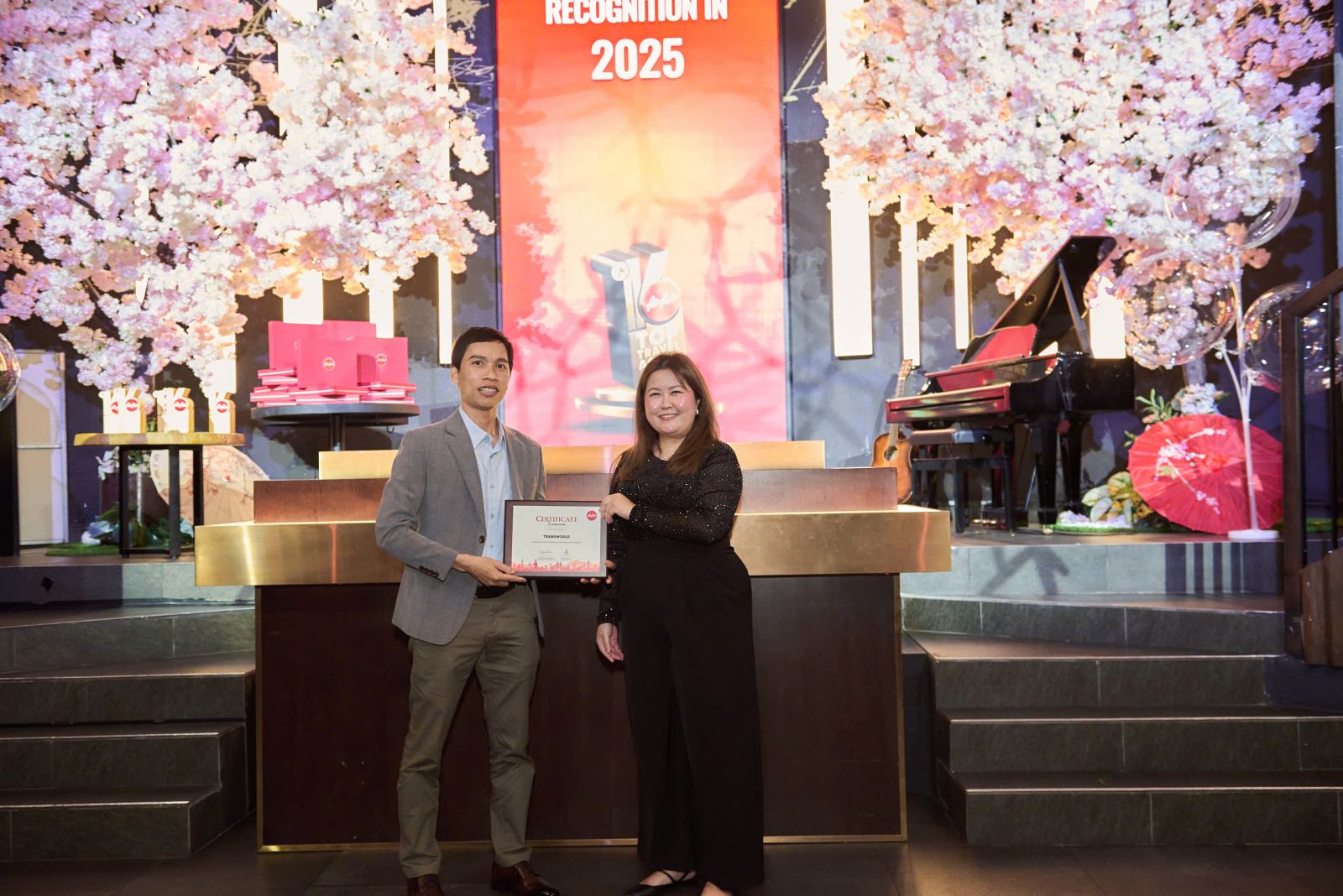 Ngày 18/12/2025, Trans World vinh dự được AirAsia trao tặng Chứng nhận Top Đại Lý AirAsia 2025, ghi nhận những đóng góp và thành tựu nổi bật của phòng vé Trans World trong suốt năm 2025.