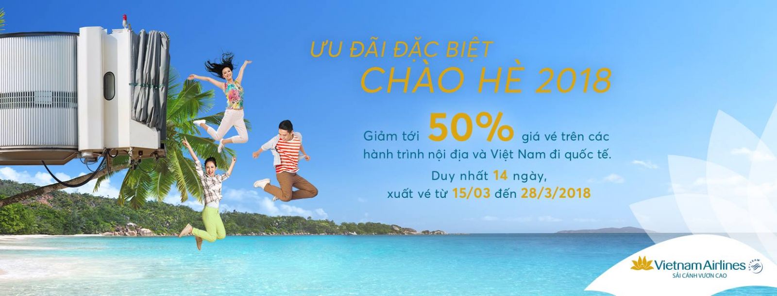Đồng hành cùng các bạn trên các chuyến đi. Trans World xi gửi đến các bạn chương trình “Chào Hè 2018” của Vietnam Airlines cực kì sôi động, với ưu đãi đặc biệt giảm tới 50%